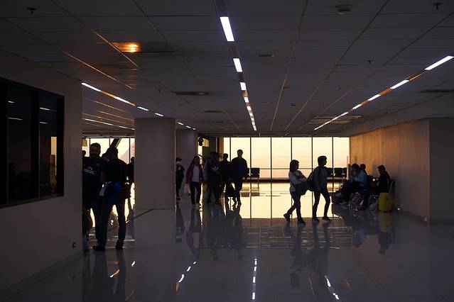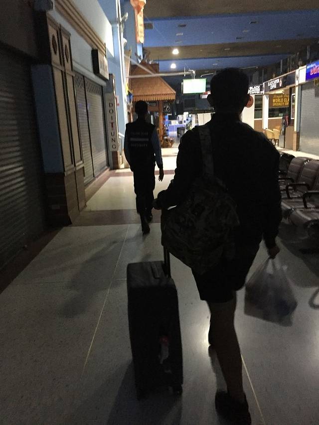 不过保安打了个电话,可能是值班大叔?然后保安很大的笑脸放我们进去了,并指了一条近路。我们到了机场大楼,大楼果然们都关门了,里面也是昏暗的只亮了几盏灯。我还以为自己要露宿机场外喂蚊子了。没想到过了半个小时,保安骑着摩托带着另一个保安来帮我们开门,把我们带进了机场内,并且告诉我们可以在哪个长凳上睡觉。嗯,心里当时就安稳了。