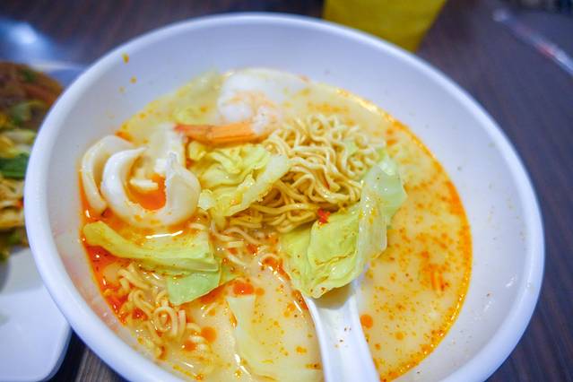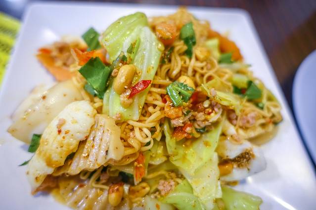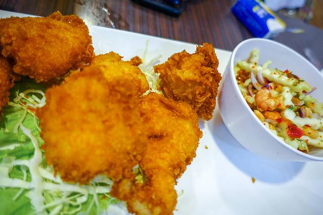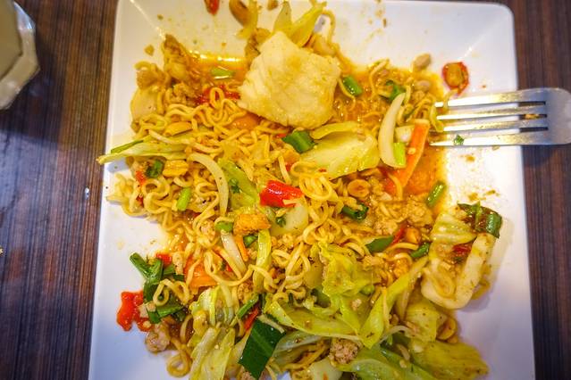 我个人觉得上图的海鲜汤面味道非常好,下面的干面非常辣,香料味也很重。炸鱼配青芒 沙拉 的炸鱼很好吃, 沙拉 也很辛辣。。。总之一般般吧