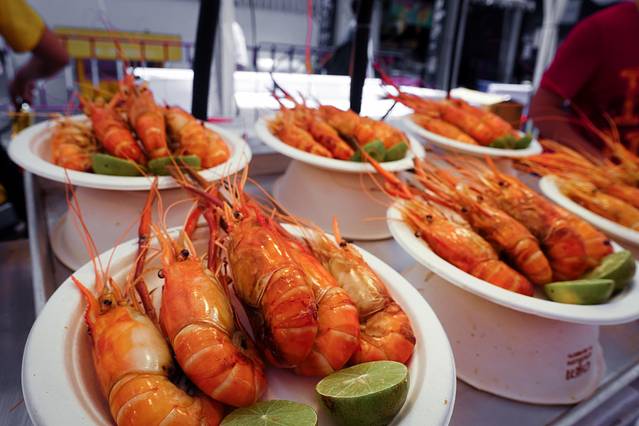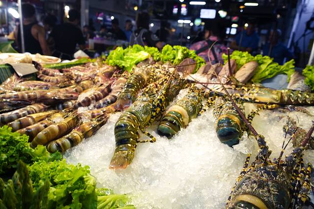 暹罗伯乐宫商场旁边的市场,第一次晚上来这里吃泰国大排档,泰国这种大排档和街边摊都非常多,价格的话也不等,一般带红虾的会贵一些。