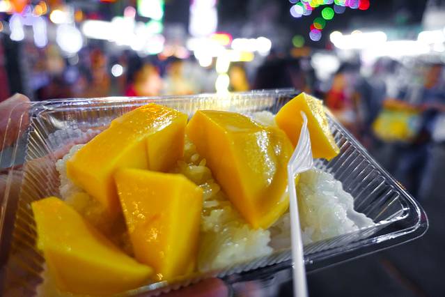 芒果糯米饭,非常好吃!芒果新鲜,糯米软糯,上面还淋了一层奶油。回味无穷啊~~~~