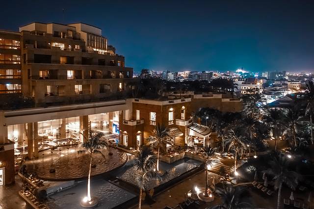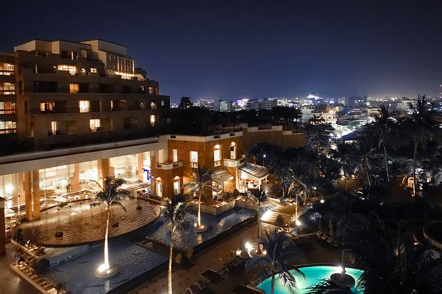 房间阳台上看到的海滩夜景。