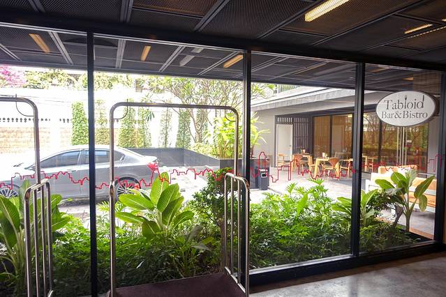 我们住的这个酒店很便宜300多一天,酒店不大,有一个小泳池,一对白人老夫妇一天到晚躺在躺椅上晒太阳。酒店位置不是市中心,但是走出巷子就是地铁轻轨。而且网红套套餐厅就在酒店前面一点点,我们每天进出都说一定要去,可惜最后去华欣离开时也没找到机会去体验一下,有点遗憾。下次吧。
