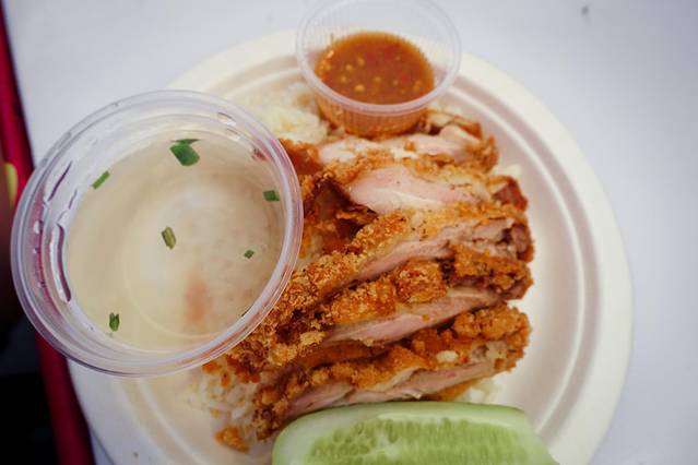 炸鸡配米饭不到100B 20块左右。值得一提的是,那一小碗汤真的非常鲜一定要喝哦!!!!!