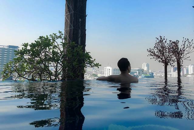暹罗设计酒店Siam@Siam, Design Hotel Bangkok是很有名的酒店,位置就在暹罗购物广场附近。当然也为中国年做了布置,但是定这家酒店的主要目的除了位置好,更重要的是因为无边游泳池了。