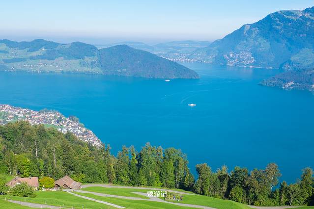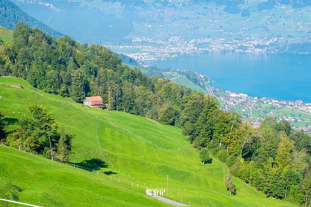 前一日在苏黎世玩耍完毕已接近日落,幸亏司机小伙伴常年开山路,车技过硬,沿着小路爬上山,民宿的男主人已经在路口等我们了。民宿位于半山,周围一片是山牌牧场,可以俯视卢塞恩湖,远眺瑞吉山,仅仅门前的景色就令我们雀跃不已了,想久居于此了,也难怪男女主人不顾瑞士的高额的生活成本,离开俄罗斯和德国定居在这里。