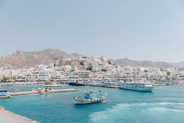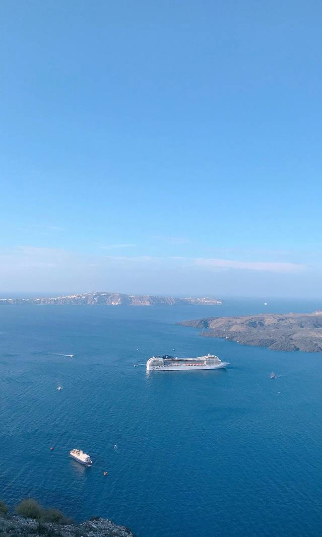 中间路过了两个岛,停了两次,不是很大,但也都是纯白色的房子,感觉这边好像所有岛都是那种风格,而圣托里尼岛就是名气最大的那个了吧,面积是不是最大就不清楚了。