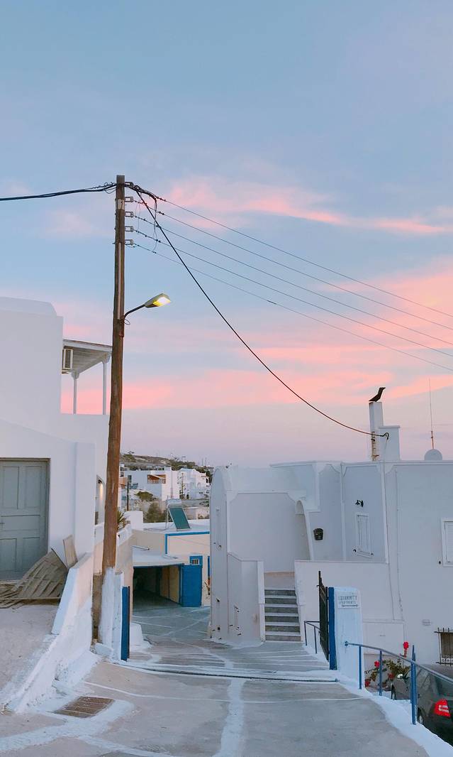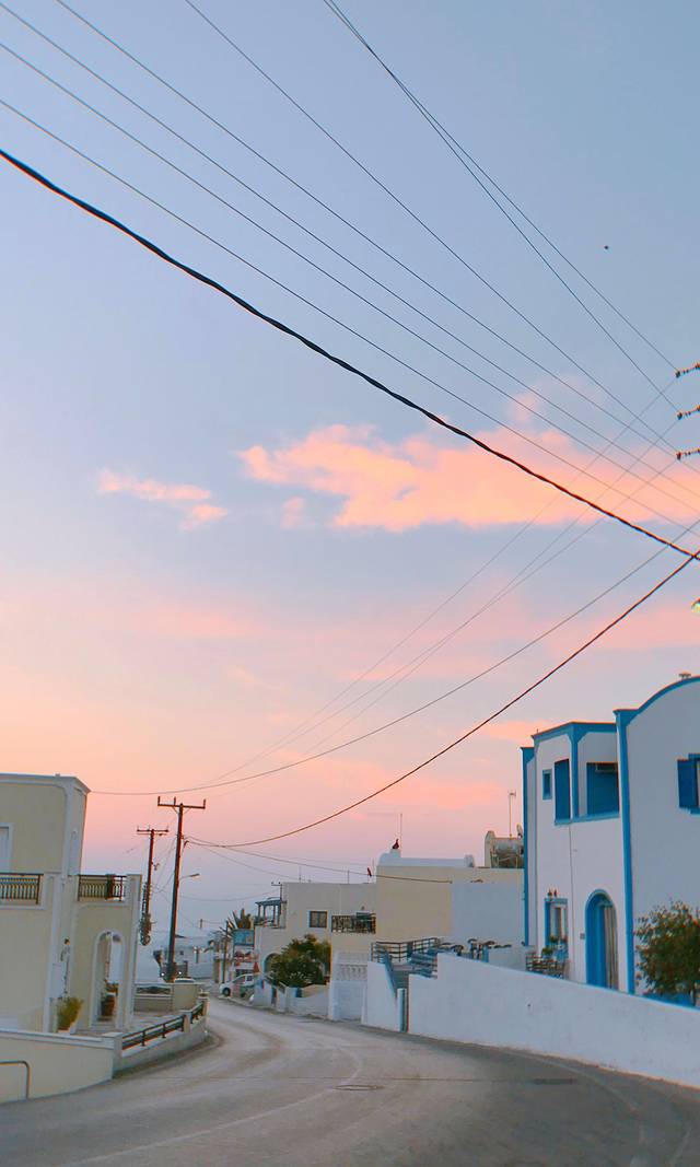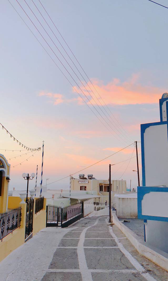 我住的酒店离他俩的有一段距离,我早上六点就出门往他们那边走了,天才刚蒙蒙亮,一边走一边用手机拍了几张清晨没有人的圣托里尼岛,发个朋友圈,收获到了最近一段时间最多的赞了。