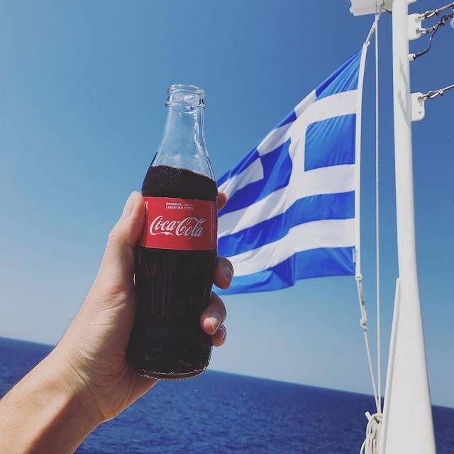 希腊的可口可乐和希腊的国旗,以及中国人的手👋