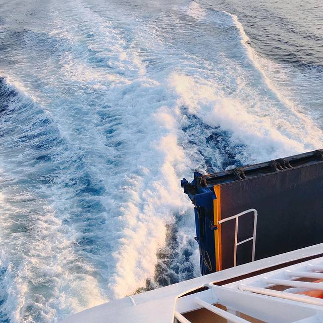 天刚刚亮就发船了,好像说一天去圣岛的邮轮就两趟,毕竟一次要七个小时,我们赶最早的一班,到岛上都要下午3点多了。