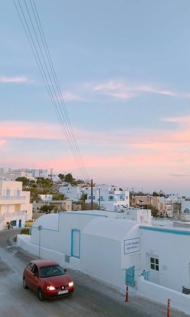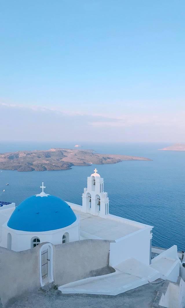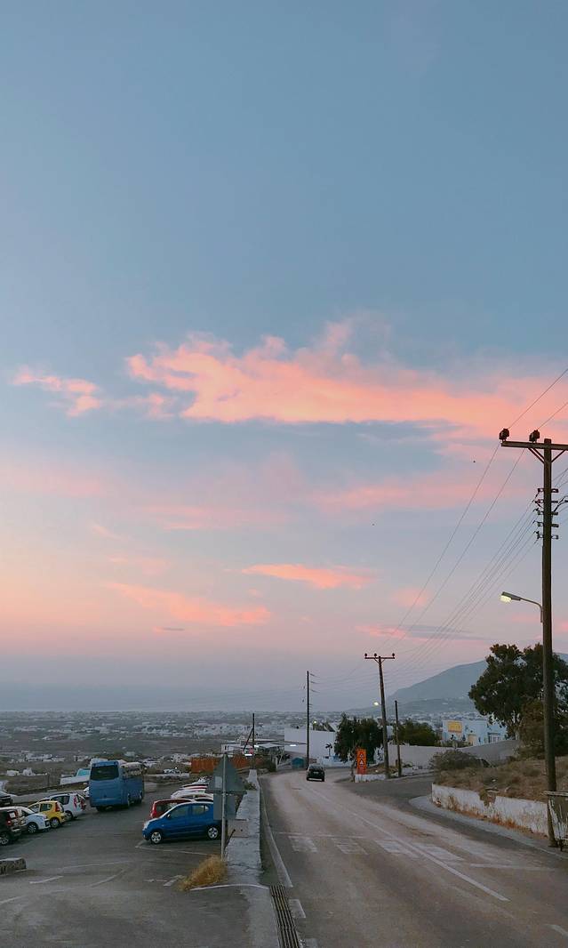 上了邮轮之后天开始慢慢亮起来了,就是这张蓝色和粉色,肉眼看到的颜色更美,在希腊看的第一个日出。