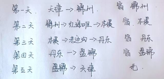 首先选择了自驾游就一定要提前确定好出行的路线!这次的目的地是 丹东 ,途径 红海 滩、老边沟需要游玩。所以路线就如图定好~~一开始的计划是酱紫的…但最后一天返程的路上,路况简直超级棒!所以就顺道又去了一趟阿那亚