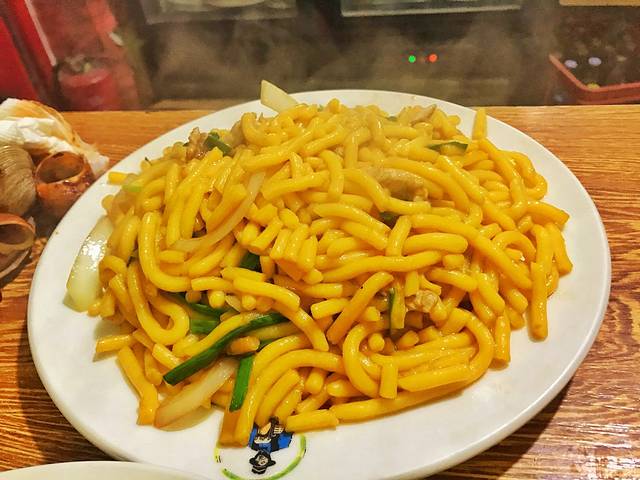 黄蚬子选择的水煮,爆炒海螺,锅包肉,还尝了特色的炒叉子。