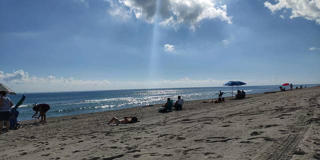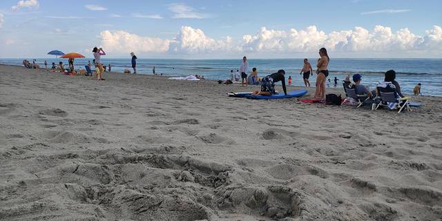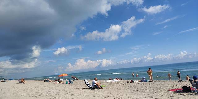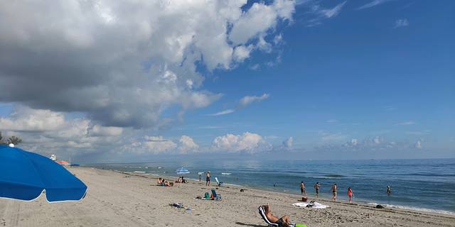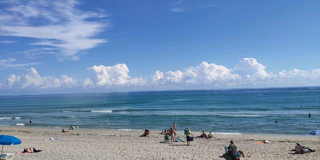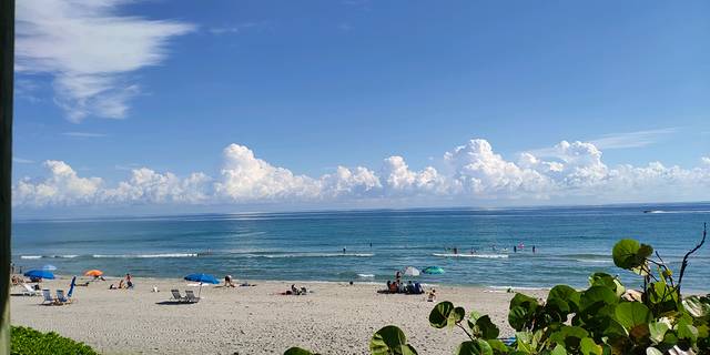 迈阿密的海滩,蓝天白云,沙滩,小孩已玩疯