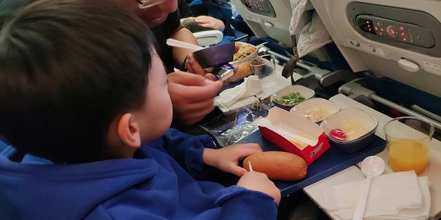 坐地铁到达里根机场,吃过日式料理,准备登机。在餐厅写作业的小朋友很可爱。乘坐JetBlue航空,阳光之州我们来了