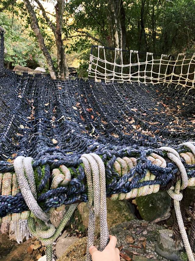 在沟谷石头较多处路段,结了一张网,要从网上行走。绝对锻炼勇气、胆量。