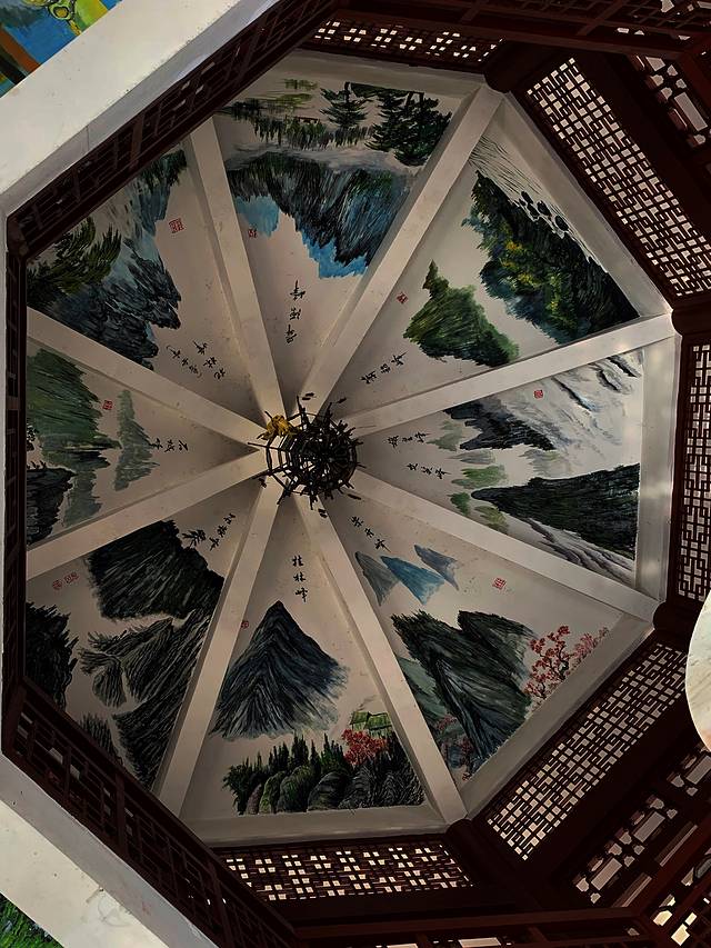 舜帝陵不愧是帝陵,华丽的建筑景色细致到房顶壁内,精彩绝伦的山水画呈现在游人们的头顶。