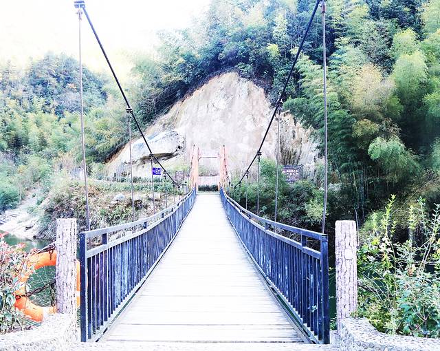 三分石,三石矗立,水分三处,山势险绝,飞瀑如练,不愧为九疑山难得的一处风景名胜。高高的桥走过去还有点害怕,但是在朋友的陪伴下慢慢的就走过去了。