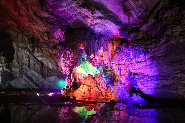 九嶷山自古以来就是中国名山之一,素以丰富的文物古迹、独特的自然风光,奇异的溶洞和别具一格的民俗风情著称于世,这次亲眼一见紫霞岩,景色果不其然。第一次见到见到如此奇幻的岩洞,稀奇形状的岩石在色彩缤纷的灯下衬托得更是美轮美奂。