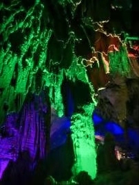 第二个是彩色的紫霞岩。里面的灯光十分耀眼。像是梦幻世界很优秀的游景胜地。两边的山,那辉煌的灯和红红绿绿的霓虹灯光.例映在山里,变幻成千万条弯弯曲曲的,轻摇曼舞的彩绸。