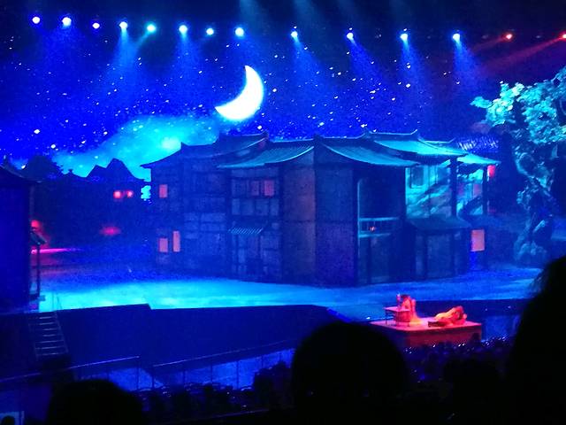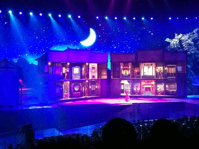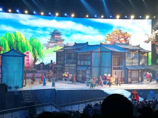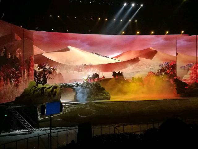 比较有意思的是看台可以移动。整场演艺分为序幕《岁月再现》及《送君千里》、《狼道遇险》、《异国风情》、《祥雨洗尘》、《迎郎归来》、《华夏盛世》七幕剧情。讲述了驼队不畏艰难开拓丝路,促进了与沿线国家的文化交流和贸易往来。