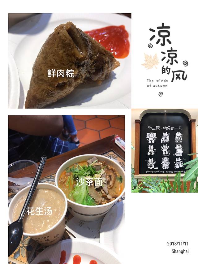 厦门特色小吃,花生汤,沙茶面,鲜肉粽,花生汤比较甜,沙茶面就是猪杂汤面,猪肝煮的有点老,还是鲜肉粽好吃点。