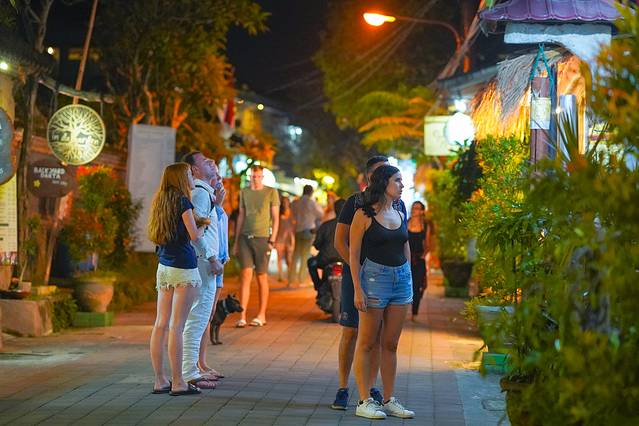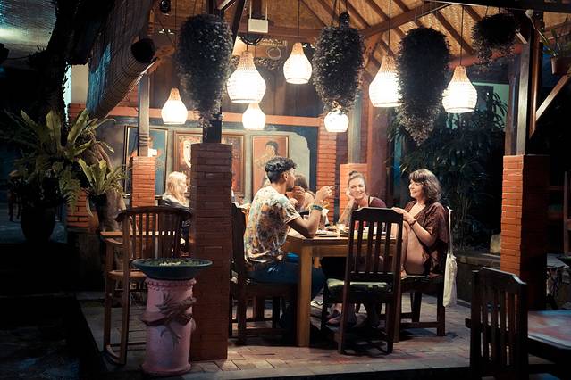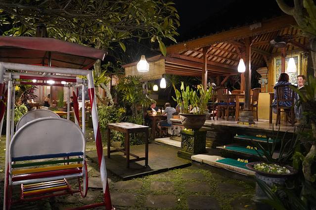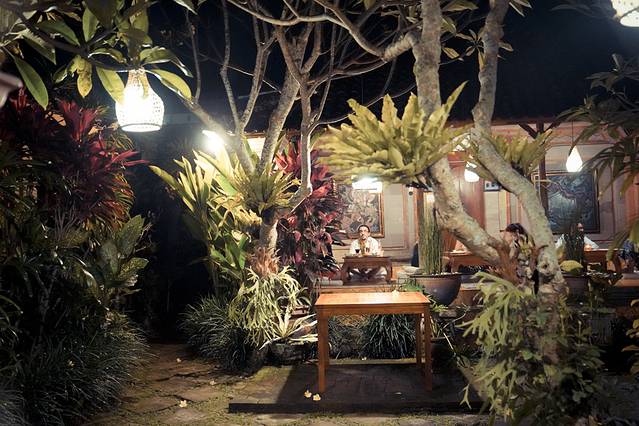 Lila Cita Inn balinese style是一间家庭旅馆,员工们都赤脚在院子里进出。在老板娘的指引下,穿过夜色下的花园,我们来到了位于旅馆最里面的房间。温馨的湖蓝色小屋里设施完备,简单休整后就准备去寻觅 巴厘岛 第一顿晚餐了。
