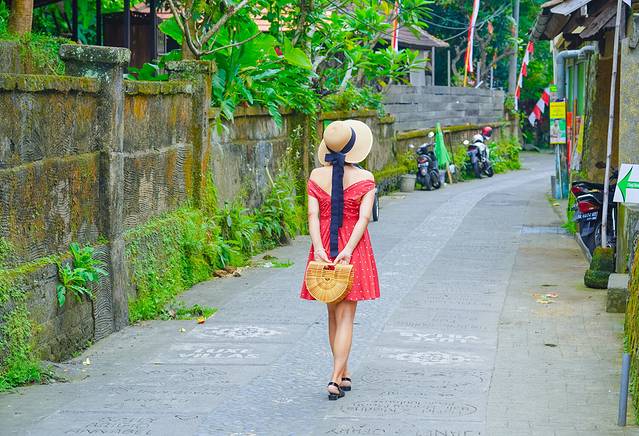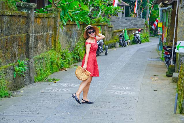 卡姜街的入口在一个非常隐蔽狭小的巷子里,即使看着导航,都很有可能错过。走到卡姜街上才觉得豁然开朗,很难想象距离乌布热闹的十字路口这么近,居然藏着一个如此清 新安 逸的小街。卡姜街的得名据说来自一个战争英雄,如今英雄已经离去,但他的家人依然生活在这里。这条街可能是记录乌布游客回忆最多的一条街,水泥路上面印满了游客的印迹,一直延伸向远方。