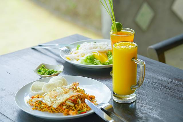 餐厅的整体环境是比较简朴的,但是坐落在原始风情的稻田间,就已经是它最棒的环境了。我依然保持初心,点了炒面,大概这次旅行过后,我应该可以出个 巴厘岛 炒面品鉴宝典了哈哈。相对来说,这家炒面的味道比之前两家餐厅稍微差点。但美景当前,又有煎蛋加持,还算比较享受。