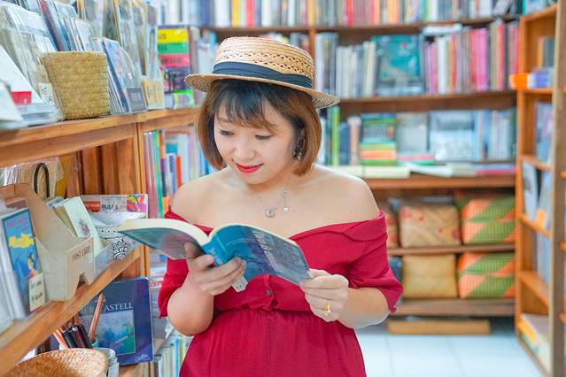 清新的芥末绿色的门脸让人一眼就看到它的招牌,立在店前的象鼻神雕塑就是书店的LOGO,而堆满书的窗口居然是画上去的。门面上显示,这里是一家独立书店,出售新书和二手书,大都是英文书籍。店里的空间其实并不大,但却摆满了数量庞大的书籍,门类主要包括印尼研究、旅游、艺术、音乐、小说等。二手书区是每天更新的,其中包含很多稀有、古旧和绝版的书籍,尤其是关于 巴厘岛 的书。 比如有一本装在复古铁盒里的迷你书,内容非常有趣。在二手书里淘宝,也是旅行中的一大乐趣啊。