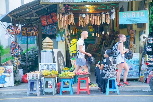 经过乌布皇宫时,我们往里看了一眼,心照不宣地彼此说,看这个门和咱们住的地方多像啊,哈哈。JI Raya 和JI Monkey Forest交汇的十字路口是乌布的中心,也是乌布最繁华的地区。沿着几条主街溜达,我们发现乌布其实比想象中要时髦很多。不仅有一些高级品牌连锁店,最吸引人的还是当地人开的商店,能看出乌布人的艺术天份和创意。珠宝、服饰、家居,很多店都让我们眼前一亮,逛得兴致勃勃。