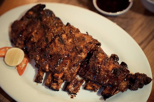 当然也不能光顾着养眼呀,最有名的猪排赶紧点起来。超大份的小乳猪肋排外皮酥脆,内质滑嫩,甜辣酱香,被我们两个姑娘吃个精光。有多少满足感,就有多少罪恶感,实在是太横啦哈哈。