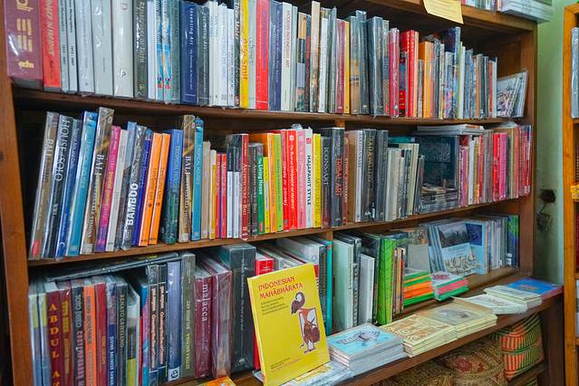 喜欢和本地人聊天的我们也厚着脸皮打扰了店长一会儿,原来这家Ganesha Booksop成立于1986年,由Ketut Yuliarsa和他的妻子Anita创办,算是一家小型家族企业。作为独立书店,店里也会自己出版关于印尼的英文书籍。让我们特别感动的是,为了促进 巴厘岛 社区的扫盲、学习和阅读,书店还有纯公益性质的扫盲项目。