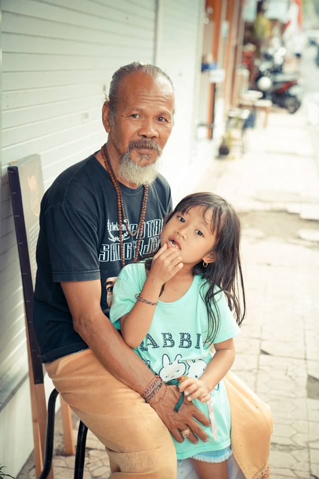 招牌上画的是端着咖啡杯的画家达利,头上还包着 巴厘岛 男士的传统围巾,也是挺有创意的。不过这家店之所以两次路过都让我关注,是因为除了老板,还有一对爷孙俩在旁边看店。爷爷的头发和胡子花白,眼睛却是囧囧有神。可爱的小孙女有一双美丽的大眼睛,总是腼腆而好奇地注视着咖啡馆外面的世界。询问之下得知,老板和他们是一家三代人,一起守着这家小店,让人觉得格外温情脉脉。