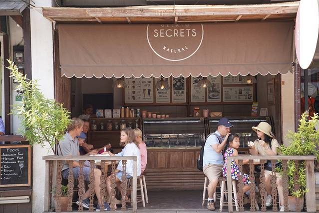 开业快十年,Gelato Secrets目前在 巴厘岛 已经有11家店,光在乌布就有3家。除了Gelato,店里也出售纯正的 意大利 Sorbetto和Affogato。Sorbetto是一种不含鸡蛋和奶制品的 意大利 冰糕,同样是天然无添加,只用新鲜水果制做。餐后甜点Affogato则是把冷煮的咖啡倒在冰淇淋上,感觉也是很好吃。这里的咖啡也是印尼产的呢,用的是来自苏拉威西岛一种叫做Toraja Arabica的咖啡豆,真的是把产自印尼进行到底呀。