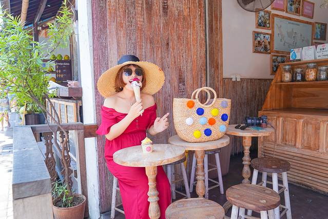 全部木质装修的小店里,大概有30多种口味的Gelato,五颜六色,让人看得眼花缭乱。我们选了M size 的盒子,可以装三个球,加5000印尼盾可以把盒子换成蛋卷。店员小哥在挖Gelato球的时候真是非常实在,每个球都特别实惠地压上几下,把看着不大的盒子盛得满满的。吃起来这个味道感觉甩DQ之类的大品牌好几条街,奶香醇厚,味道非常天然。