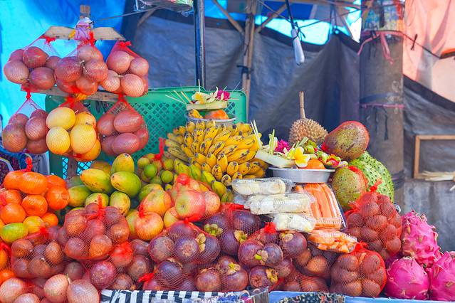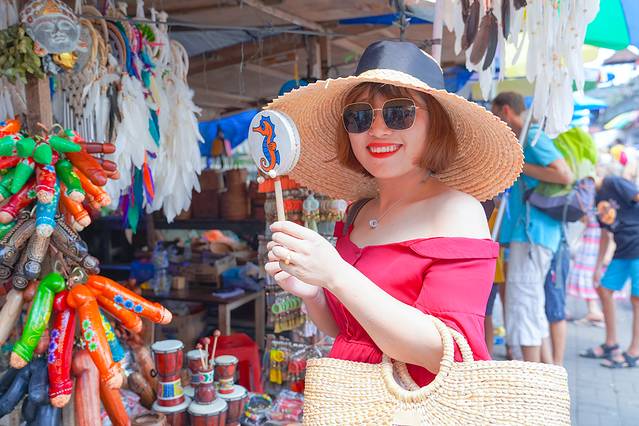 市场里的商品主要是手工制做的草编包、异域风情的休闲服饰、各种 印度 教风格的雕刻和 巴厘岛 传统的装饰品。虽然商业化程度很高,商品良莠不齐,其中既有做工精良的银饰、木雕、蜡染和油画,也不乏一些做工粗糙、一看就好像 义乌 小商品制造的,但仔细挑选还是能选到一些喜欢的物品。就是在这里买东西可真要货比三家,火眼金睛啊。
