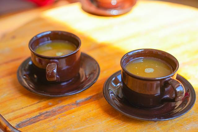 这次除了混合果汁,还点了一杯 巴厘岛 的传统饮品,Loloh Kunyit,由罗望子、姜黄和蜂蜜柠檬做成,味道比较一言难尽,有点中药的感觉,可能是有祛热解暑的效果吧。