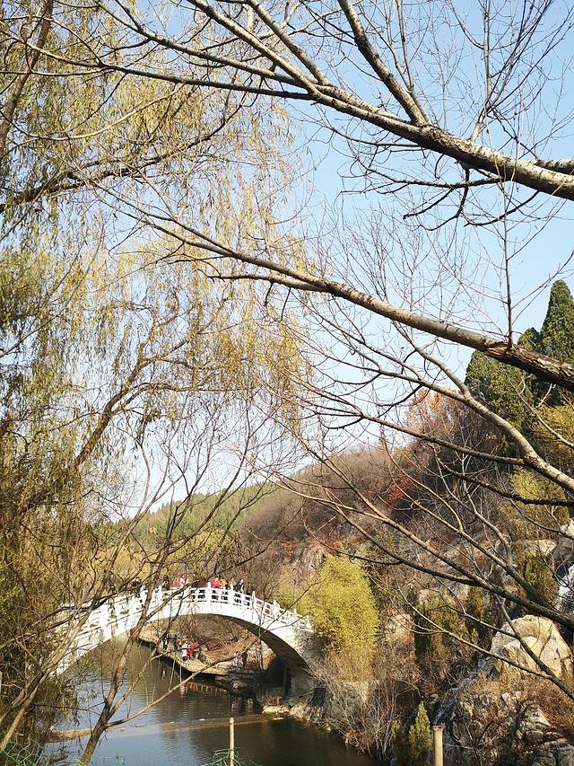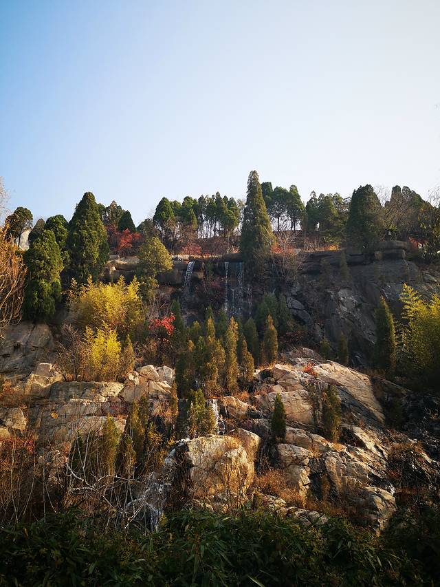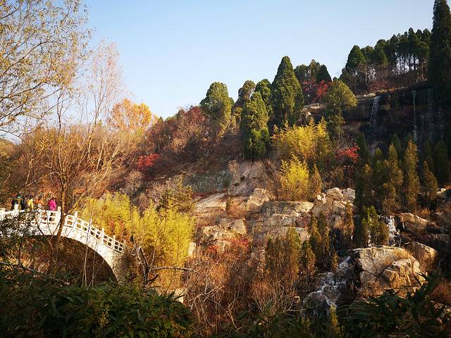 买了门票进去,心拔凉拔凉地,这,说好的10月、11月是旺季呢,是看红叶的季节呢?请问,红叶在哪?红叶?红叶?原谅我们都高度近视,居然,居然看着枝丫都光秃秃地,叶子都没多少,更遑论红叶。天呀,绝对是眼睛出现了问题,呜呜呜,大老远地过来,因为想要看红叶才来红叶谷才来济南的,原先济南就不在我们的计划之内的。呜呜呜