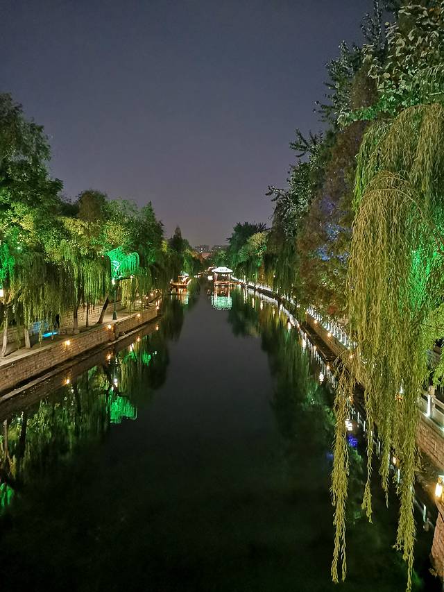 途径护城河,夜景还是不错的~~各色灯光变幻,别样风采