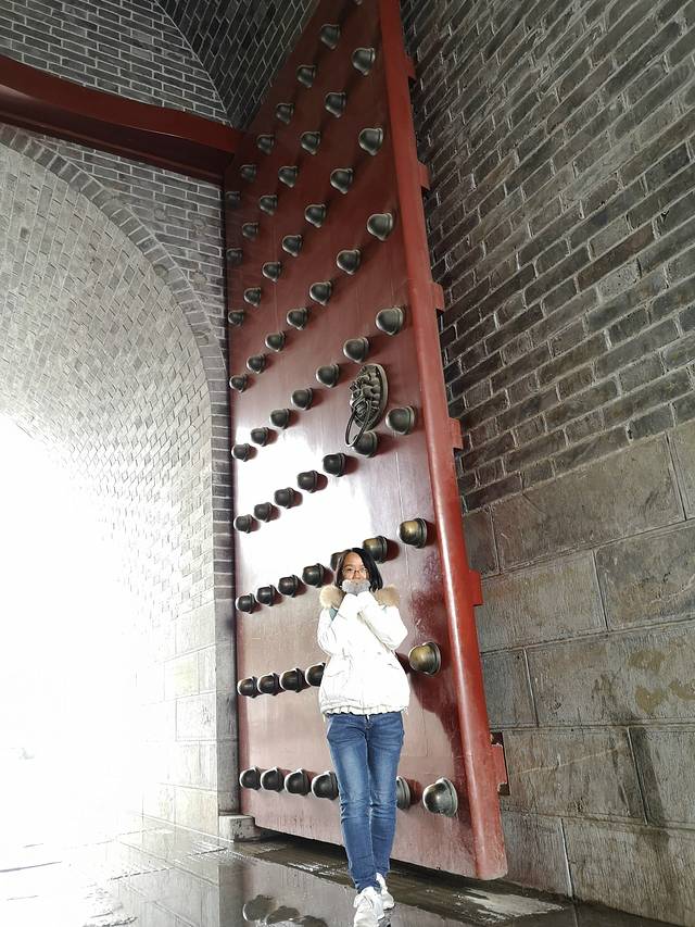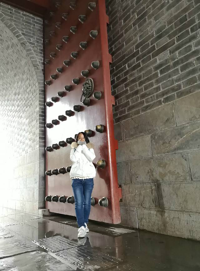 朱红的城门,恢弘而大气,小伙伴这表情,反映了当下的气温,对广东仁来说,这样的天气,实在是太冷了,太冷了。