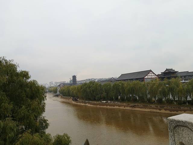 宋城外的护城河,古城和宋城都不需要门票,跟古城的门可罗雀相比,宋城要热闹不少,附近就是大润发