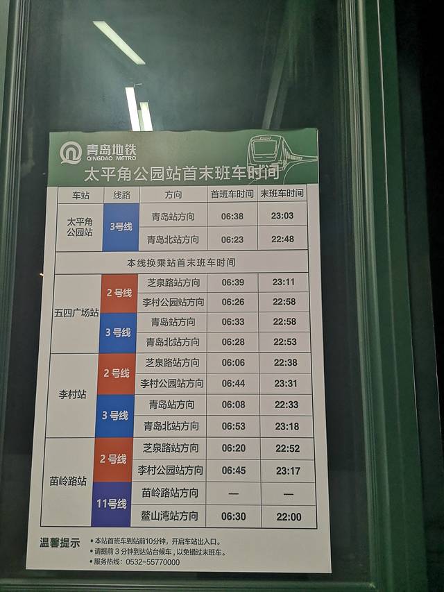 !秋天(11月份)大概5点天黑,青岛的地铁运营时间稍微晚点。