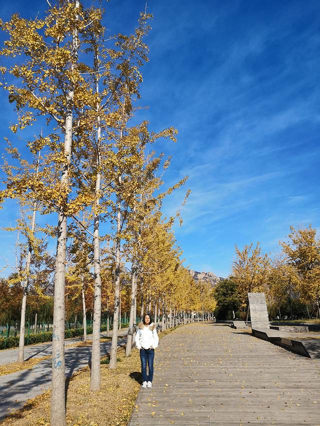 游客中心前一排银杏林,晴朗的天气正如我们的心情美美哒