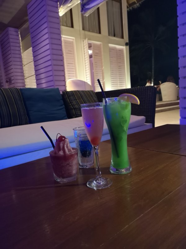 1、一价全包,请注意是包括酒水、酒吧、房间吧台零食酒水饮料 全包,全包,全包。当然很多游记也说了早晚餐也够,其实吃方面应该是够的,但是我们去几天三餐可没落下,因为游泳啥的还是很消耗的,但是酒水饮料全包就是真的提升幸福感的东西了,一杯冰香槟,配着落日;一罐冰可乐,消暑降温;酒吧里随时可以点用的酒水小食,美好美好啊!反正就是没有一点约束感,没有一点考虑吃喝消费,全部一价全包。