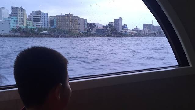 第二天一早,7月17日,吃过酒店简易早餐,到海边浪了一下,而且 马累 天气也是相当不好,真是让旅程蒙上一丝丝忧郁啊,孩子在海边浪的时候还整个落到海里,说起来都是泪。11点店家送我们来到码头,顺利与 奥臻岛 工作人员对接,然后等待快艇上岛。