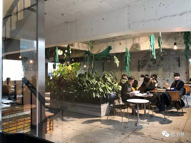 即使是工作日喝咖啡的人依然不少,二楼这片看似野蛮生长的绿植,让原始的工业风中多了一些自然气息。韩国人似乎很擅长打造这种工业风环境,破旧但又让人待得舒适。