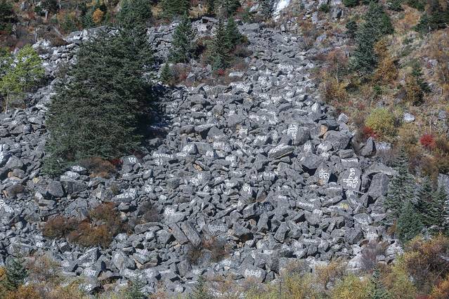 除了河道里,那漫山的石头上都写有六字真言,足以看出写它们的人有多么虔诚了。