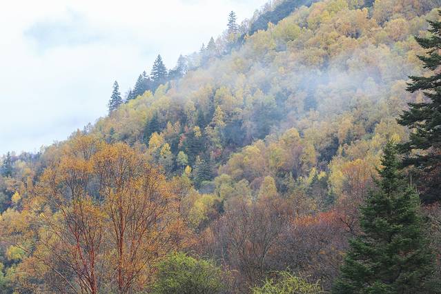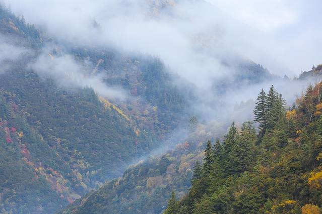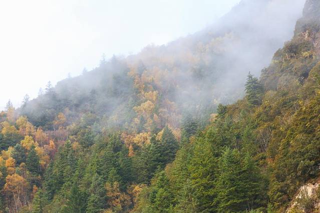 一到秋季,满山层林尽染,上帝仿佛在这里打翻了调色盘,将这里描绘得五颜六色。