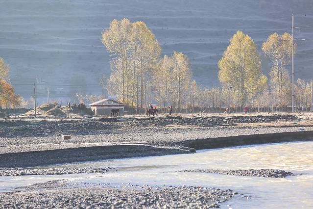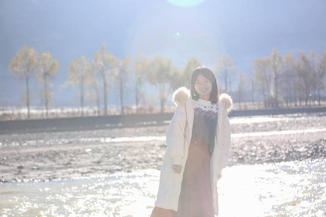清晨的新都桥,太阳光洒在河面上,雾蒙蒙的。跟同行的小伙伴说给我拍一张逆光小清新吧,然后大家一起说了句,照亮你的美。