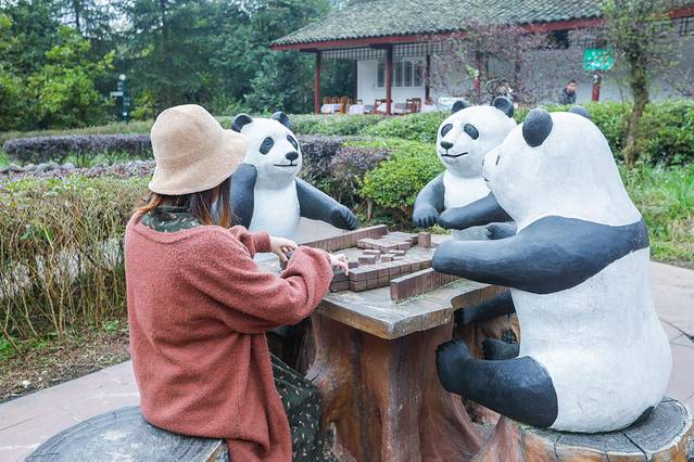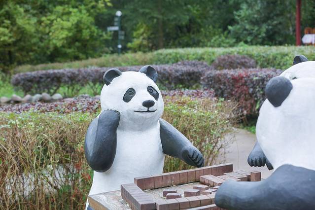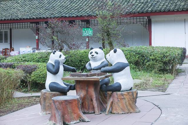 把车开到了熊猫园外停车,本打算去看碧峰峡的自然风光的,奈何大家都比较懒,走了一个下坡路看到了这“三缺一”的熊猫打麻将就觉得返回去看真正的大熊猫了。